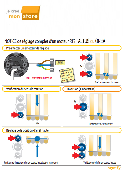 Ci joint la notice de réglage des positions haute et basse d'un moteur radio Somfy.