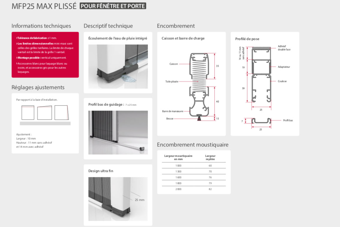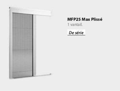 - Avec son design fin et son encombrement faible, MFP25 MAX PLISSÉ est spécialement adaptée pour les très grande fenêtres ou portes.