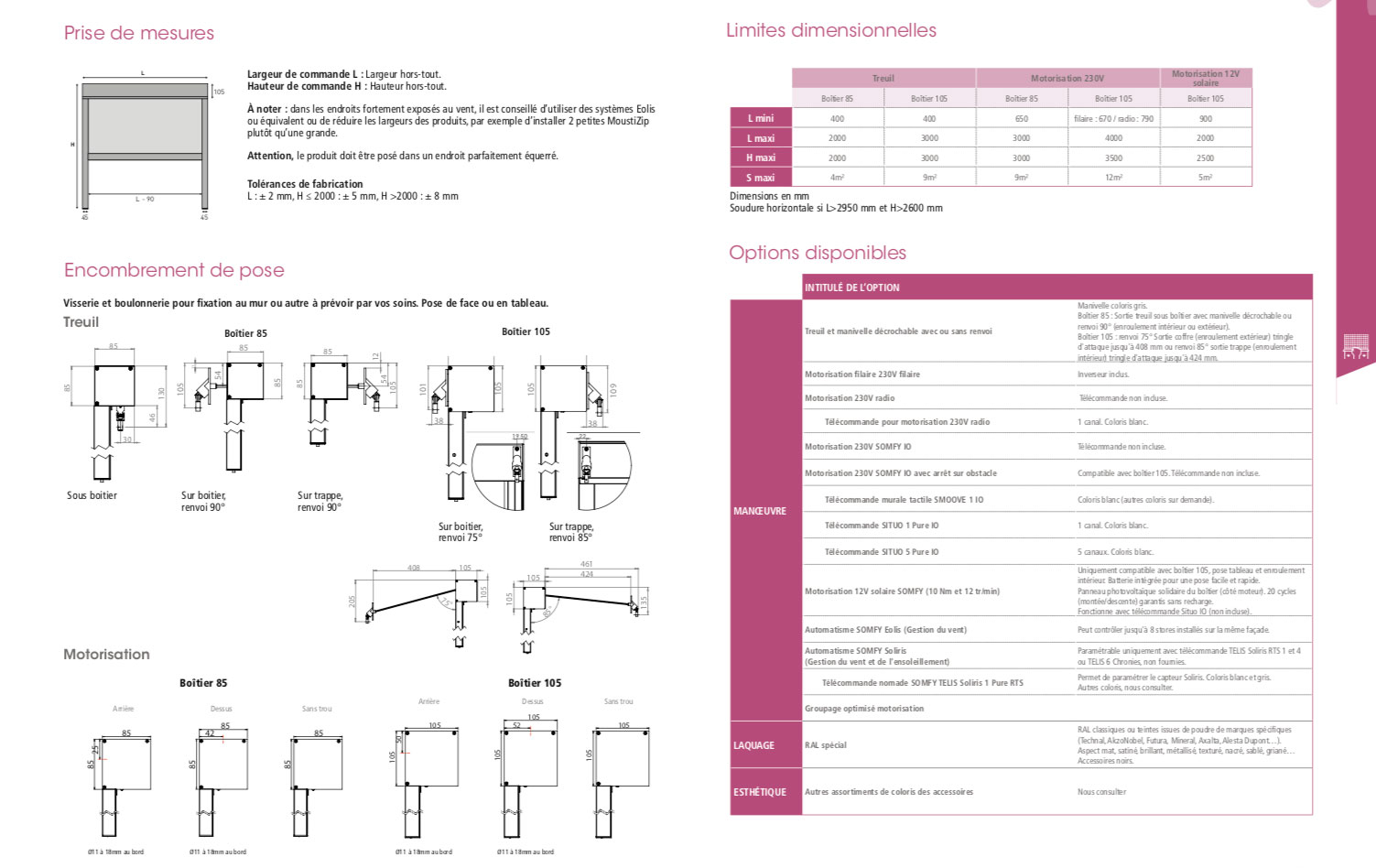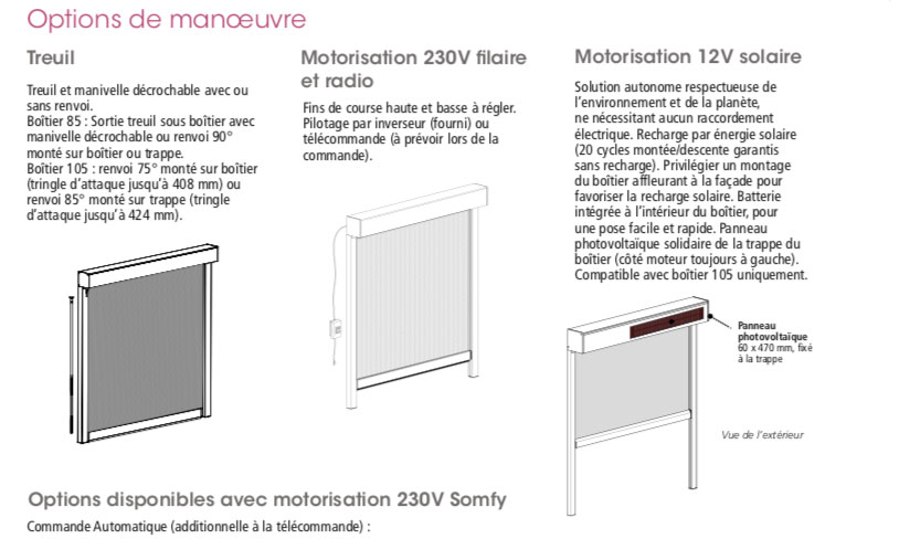 - Coloris mécanisme de série (Blanc 9010 Brillant et 7016 Mat)