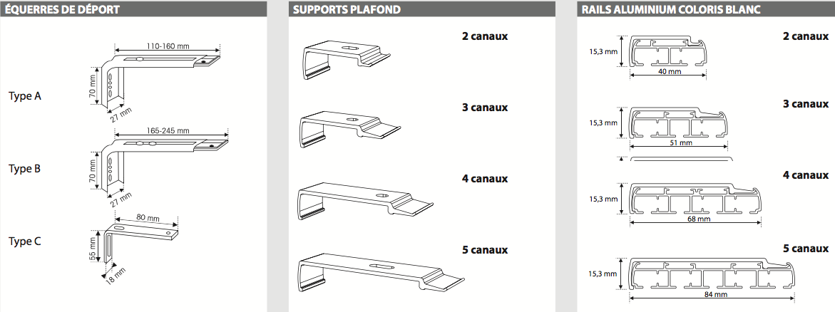 LES EQUERRES ET SUPPORTS POSSIBLES EN FONCTION DES CONFIGURATIONS