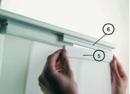 - Engager le profil de maintien tissu en l'inclinant vers l'avant en engageant le profil par le bas, une fois le profil engagé, redresser celui-ci et l'abaisser jusqu'à son maintien en position.