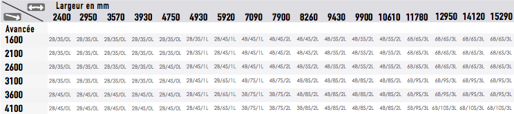 Pour les largeurs supérieures à 701 cm, nous consulter.
