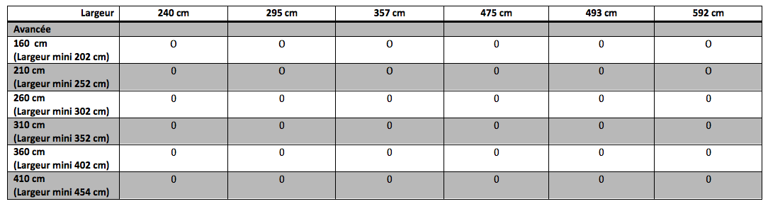 - Avancée entre 160 et 410 cm en fonction de la largeur choisie