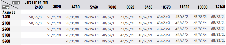 Nombre de Bras (B) / Nombre de Supports de fixation (S) / Nombre de Lyre (L)