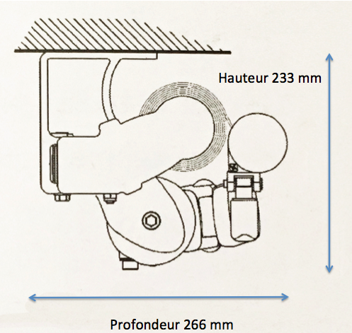 - Bras de 160 cm à 310 cm : bras spin tension par câble