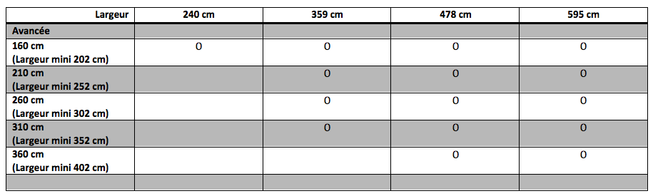 - Avancée entre 160 et 360 cm en fonction de la largeur choisie