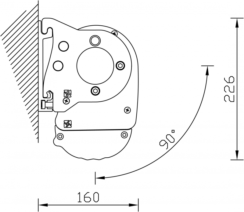 - Manoeuvre par manivelle possible jusqu'à 550 cm de large x 310 cm d'avancée