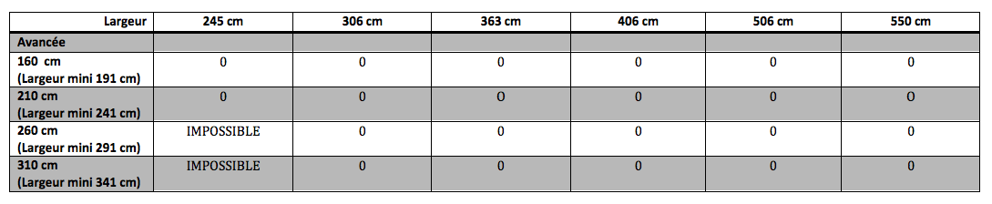 - Avancée entre 160 et 310 cm en fonction de la largeur choisie