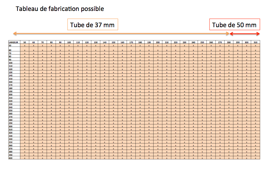 - Hauteur de 50 cm à 400 cm en fonction des largeurs.