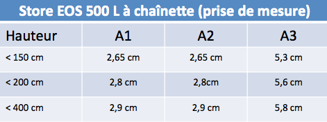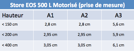Il faut donc que je commande un store de / L = T + A3 soit 180 cm + 5,6 cm soit 185,6 cm si je veux avoir 180 cm de largeur de toile